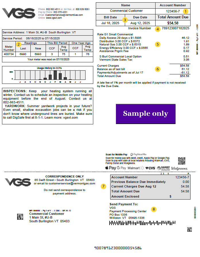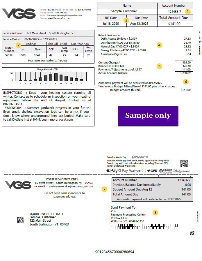 If you have any questions, comments, or need to update your mailing address, feel free to call VGS at (802) 863-4511 or email us at customerservice@vermontgas.com.