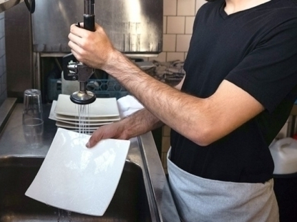 REDUCE THE FLOW: Between cooking, dishwashing, and cleaning, water heating can comprise 20% of a kitchen’s energy use. The first step is to reduce the amount of hot water going down your drain by installing low-flow spray nozzles and low-flow aerators.